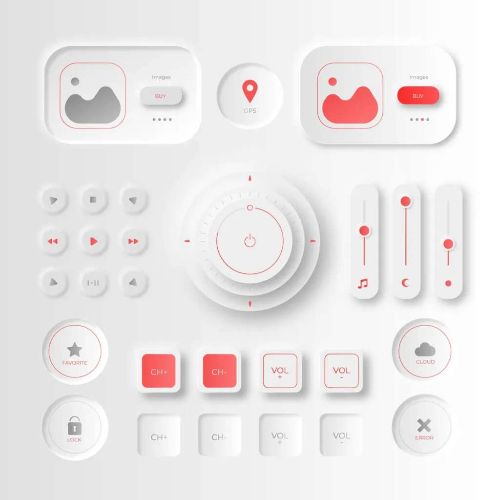 Der Fokus beim Neumorphism liegt auf dezenten, plastischen Effekten, bei denen Oberflächen durch weiche Schatten und Lichtquellen in den Vordergrund treten.